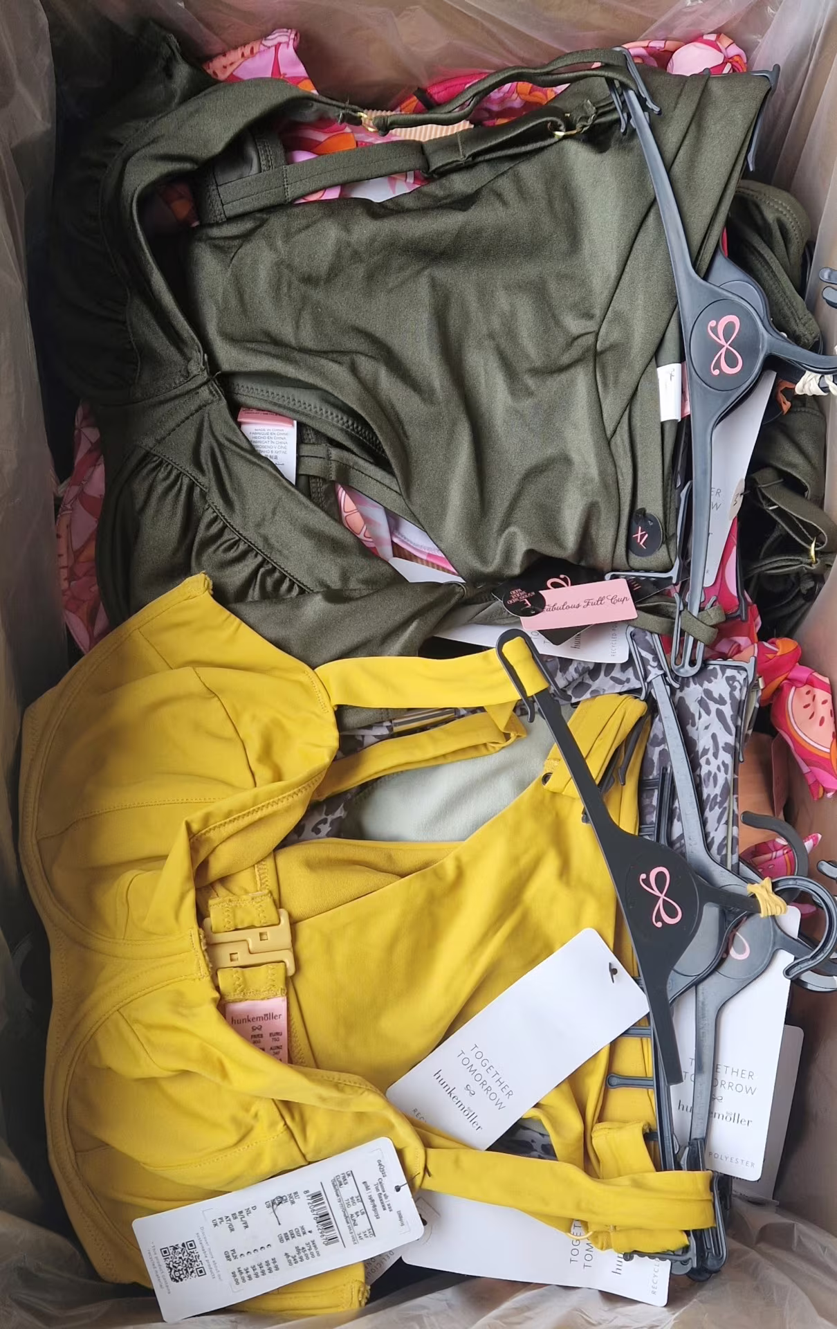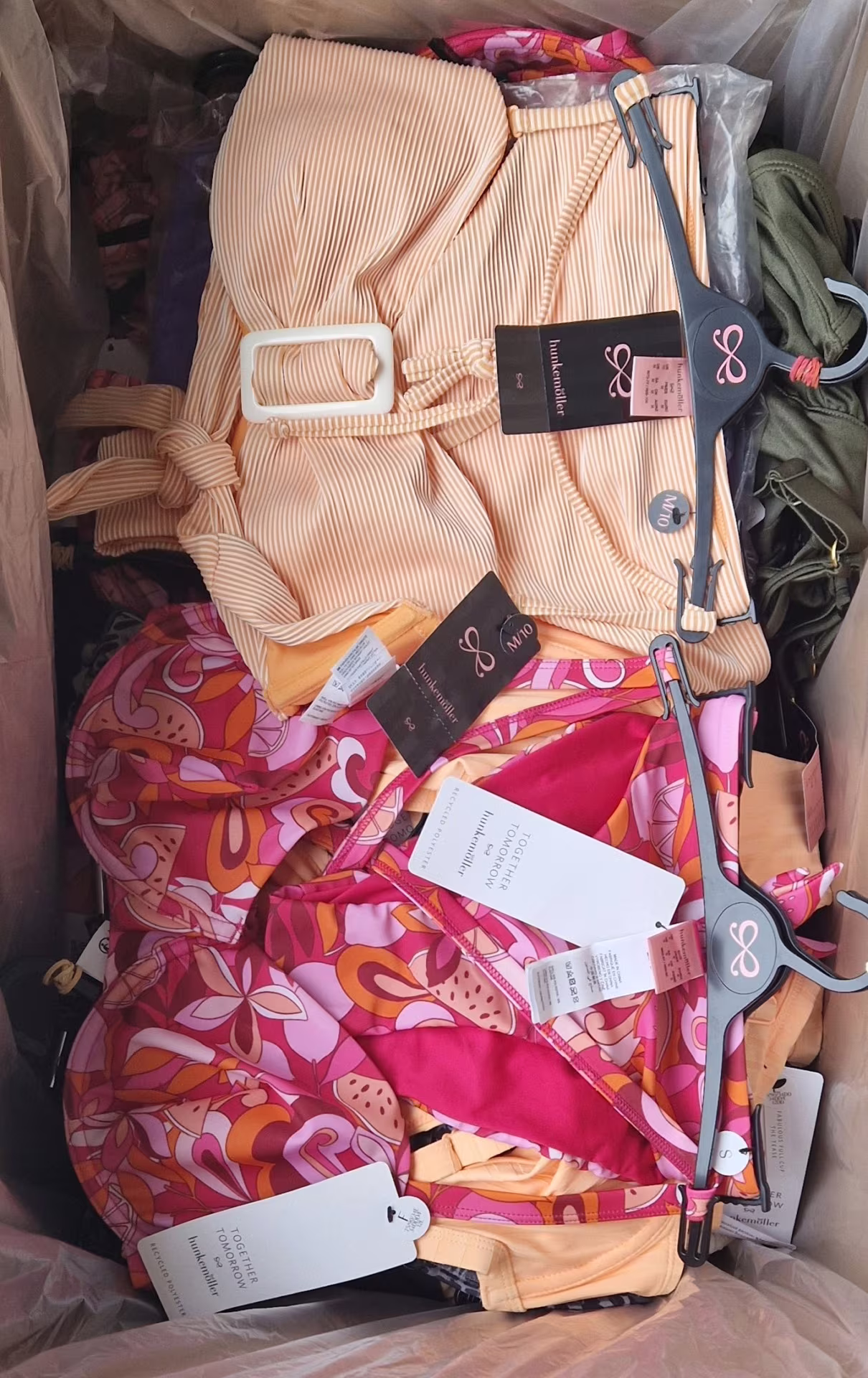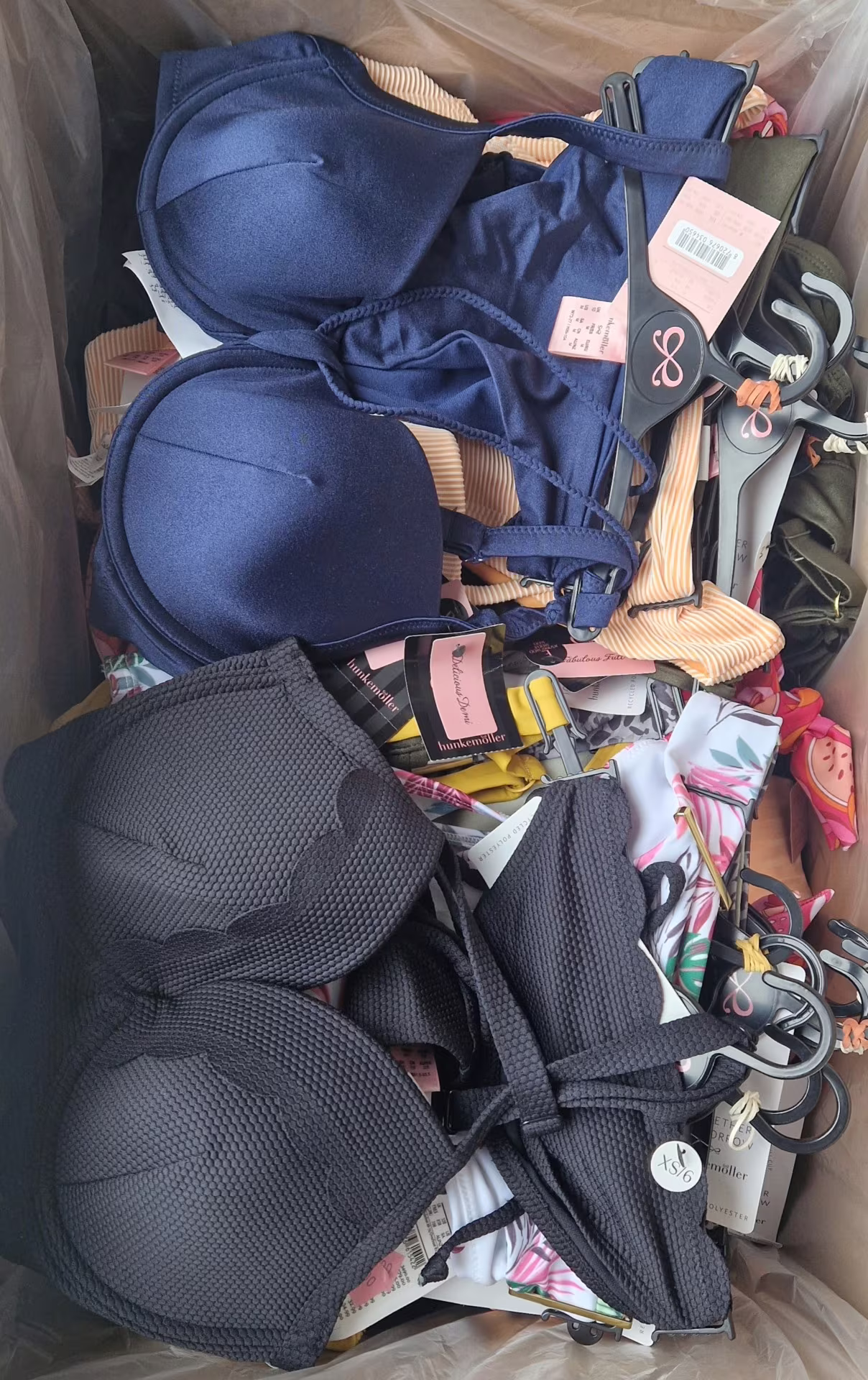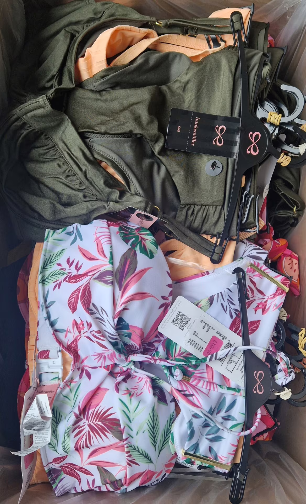 The package contains high-quality swimwear from Hunkemöller – one of the most valued European lingerie brands, known for its feminine style, fashionable patterns and refined cut. The set is dominated by two-piece swimwear, most of which come as a set (top + bottom), which significantly increases their sales attractiveness.