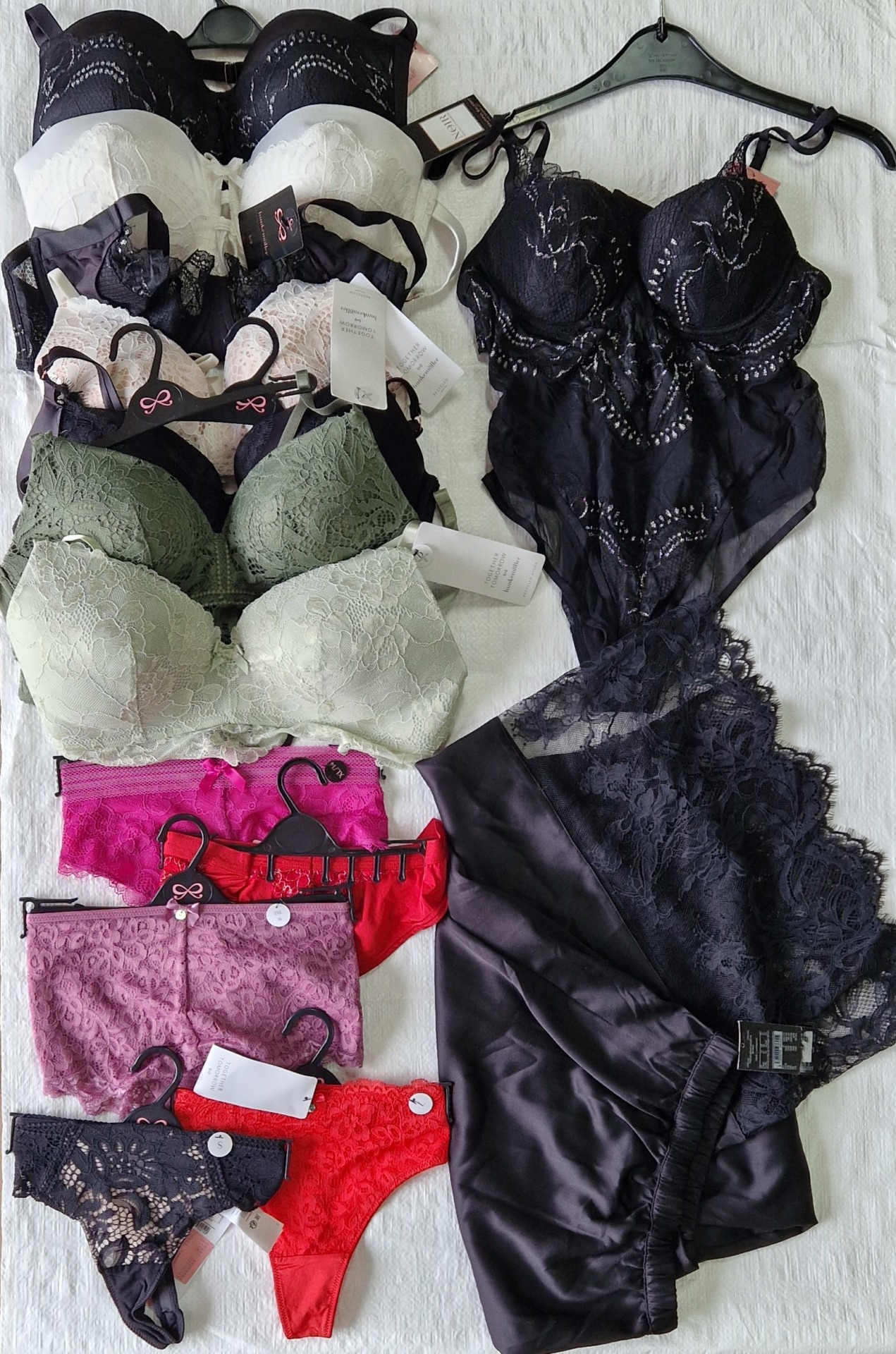 The package contains high-quality lingerie from the renowned Hunkemöller brand, known for its feminine styles, elegant design and attention to detail. The set includes panties and bras in various sizes and styles – from classic to more decorative, fashionable models.