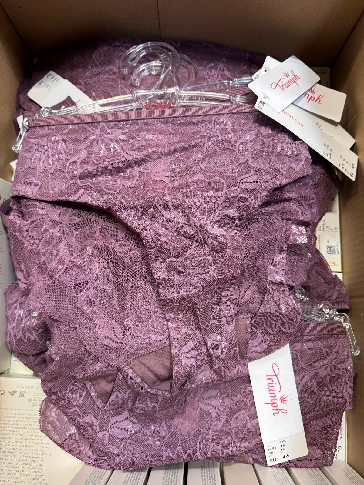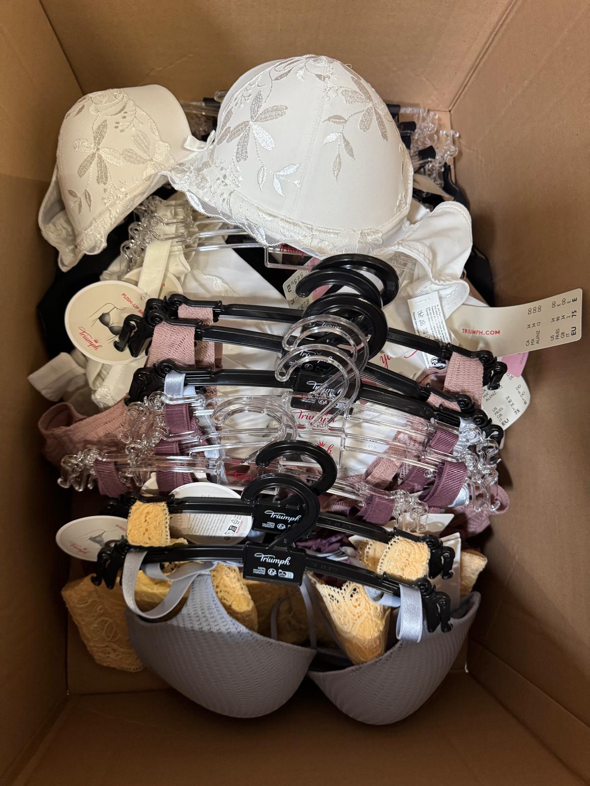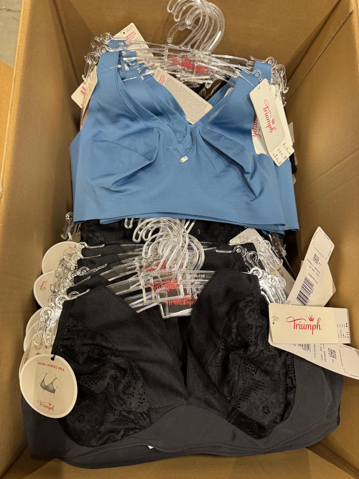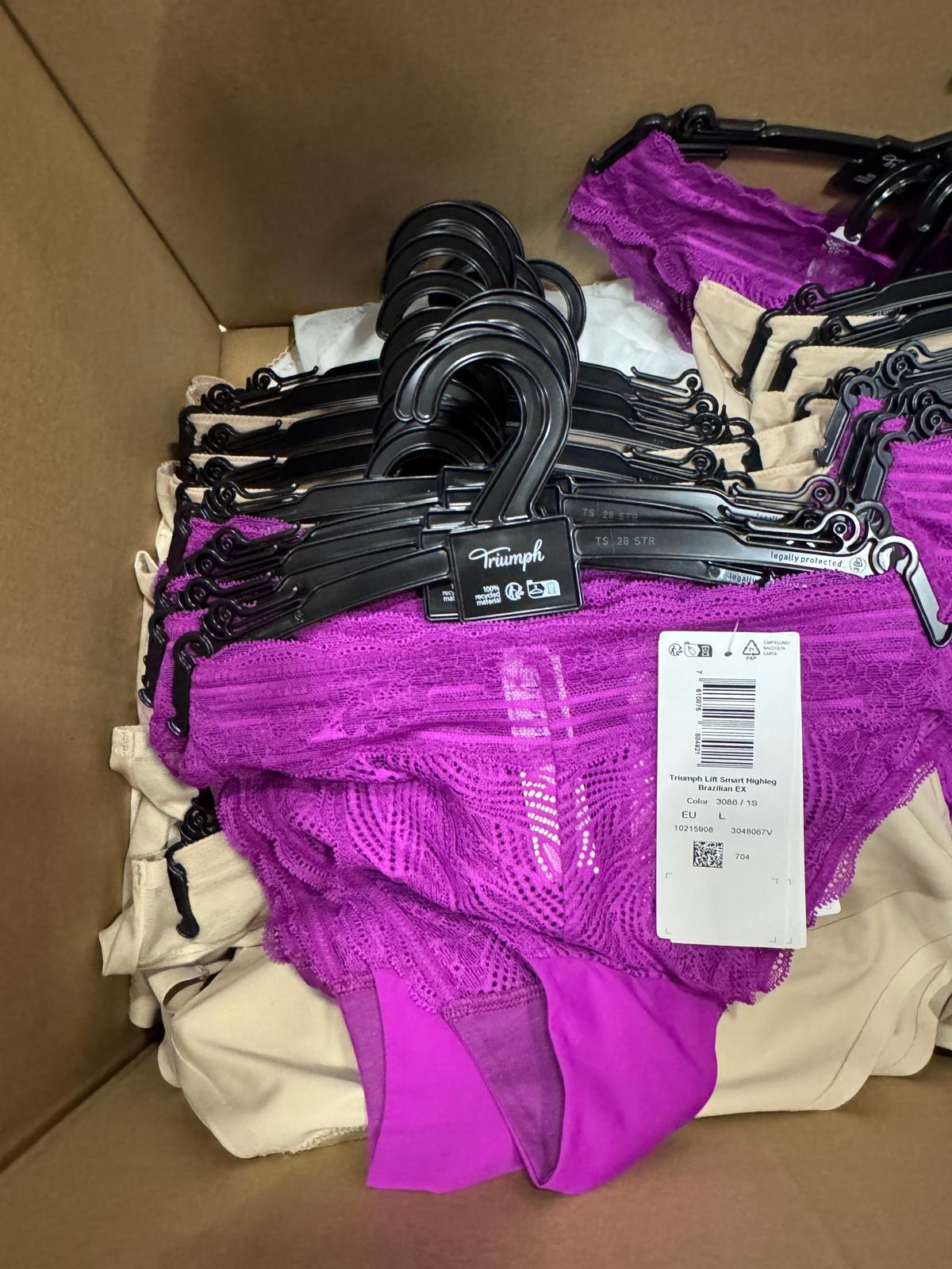 The assortment is mainly made up of panties and bras, which form the core of the mix, supplemented by a small quantity of other Triumph apparel such as bodysuits, tops, or selected homewear items. This is premium-segment lingerie that combines luxury finishing with everyday comfort.