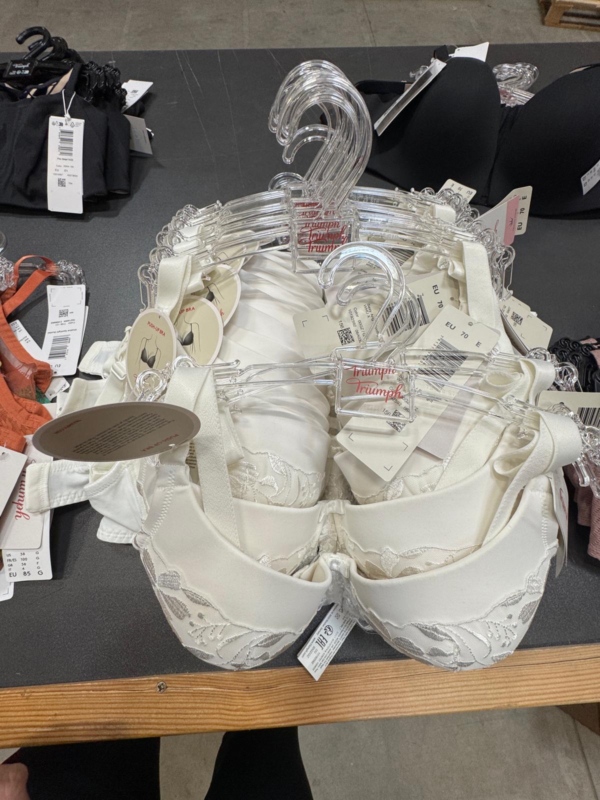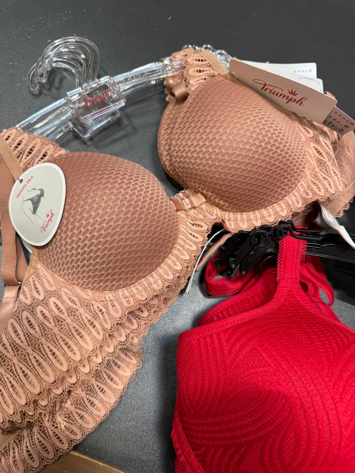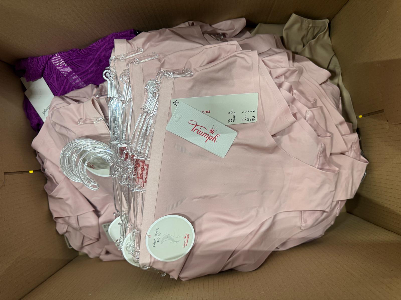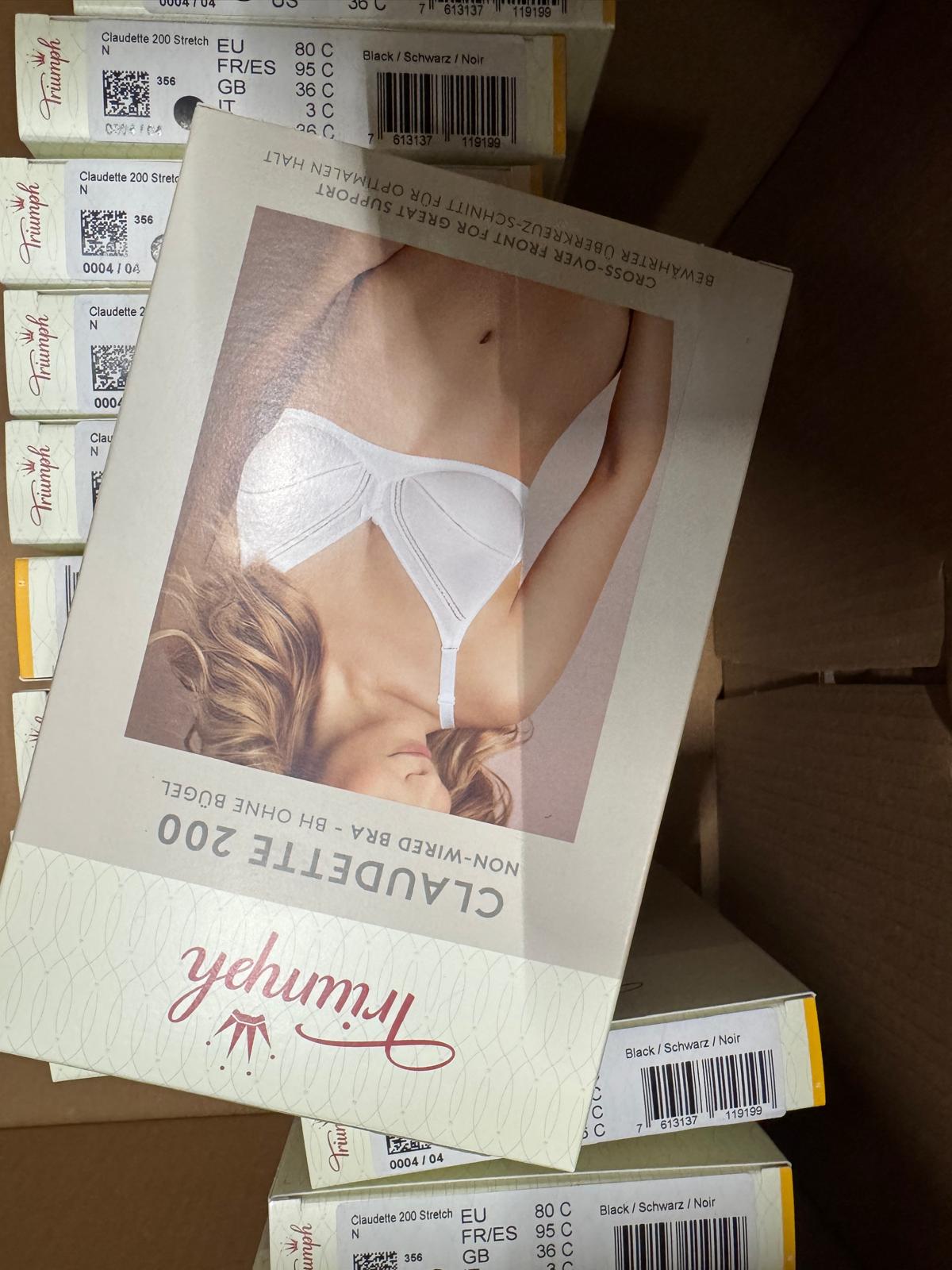 The assortment is mainly made up of panties and bras, which form the core of the mix, supplemented by a small quantity of other Triumph apparel such as bodysuits, tops, or selected homewear items. This is premium-segment lingerie that combines luxury finishing with everyday comfort.