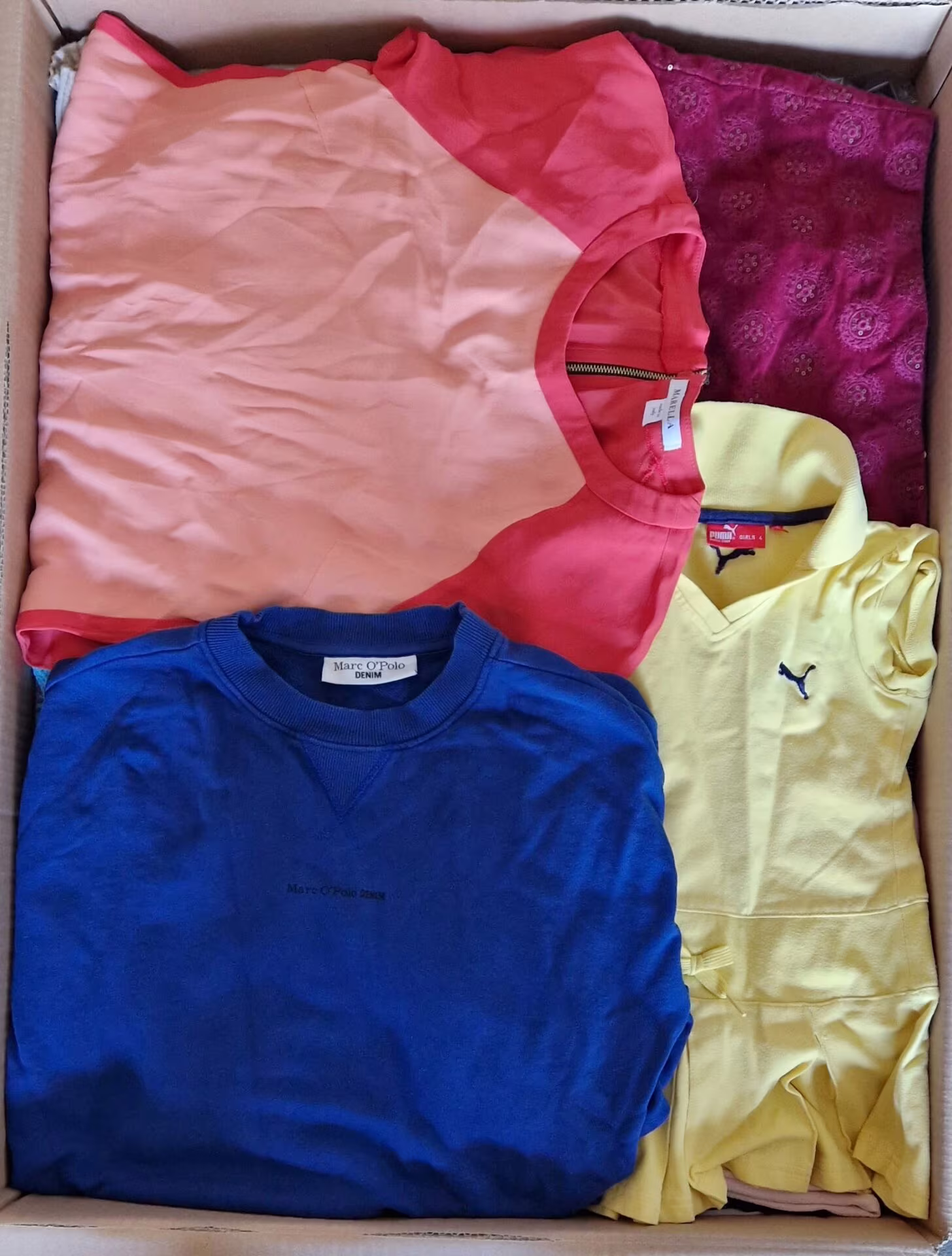 The clothing is clean and presentable, prepared for display. Due to the nature of second-hand goods, minor signs of wear or small defects may occasionally occur, which are typical for used clothing. The mix also regularly includes new items with tags or in original packaging.